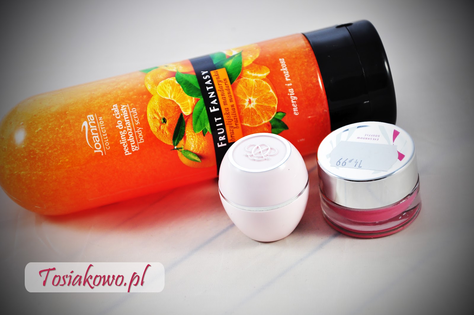 Kupiłam też peeling z Joanny, kończę właśnie taki sam tylko truskawkowy i jestem z niego zadowolona. Postanowiłam więc spróbować innych zapachów. Padło na pomarańczę. Poza tym doszedł do mnie balsam do ust z Oriflame. Słyszałyście coś o nim? Dobre to to jest? :) Bo kupiłam go mocno pod wpływem impulsu :P I z wyprzedaży naturowej dopadłam jeszcze cień w musie z Catrice (z limitki Hidden World) w odcieniu 03 Rosy & Cosy. Kolor jest bardzo delikatny, różowy (ale nie festyniarsko różowy). Polowałam na niego długo. Ale w pewnym momencie w Naturach były tylko mocno sfatygowane testery. Nawet sobie nie wyobrażacie jaka byłam szczęśliwa, gdy go złapałam.
