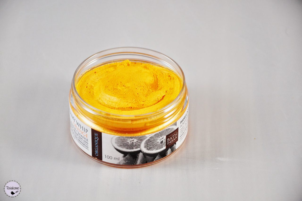Ale co tam kolor. Otworzyłam słoiczek i padłam od zapachu! Obłędnie pomarańczowy – intensywny i bardzo przyjemny! Sama pianka też mnie zauroczyła. Okazuje się, że taki sposób mycia może być bardzo wygodny. Dlaczego? Bo pianka jest delikatna i świetnie rozprowadza się po skórze. Chociaż nie ukrywam, że niezwykle irytujące jest, kiedy wchodzi mi pod paznokcie. Można jednak z powodzeniem nakładać ją na ciało za pomocą gąbki.