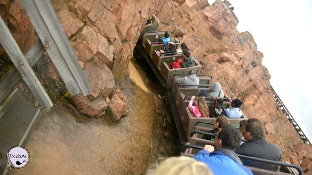 Wracając do samej atrakcji. Jest pięknie przygotowana – drewniana konstrukcja imitująca podróż kolejką górniczą. Zaczynacie na stałym lądzie, a potem tunelami przejeżdżacie pod stawem i lądujecie na górzystej wyspie. Tam torami kręcicie się wokół szczytu. Nie ma tu żadnych miejsc, w których jedziecie „do góry nogami”, a sama podróż jest dosyć spokojna, aczkolwiek ciekawa. Przede wszystkim ze względu na cudowne widoki!