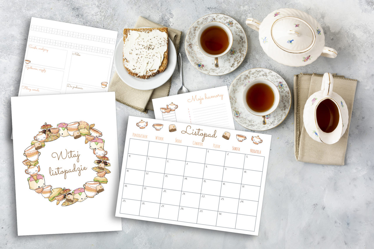 W listopadzie będzie ciepło i herbatkowo. Przygotowałam – standardowo – cztery wklejki. Jakie? Stronę powitalną/startową, planner, kalendarz i tracker humoru/nastroju.