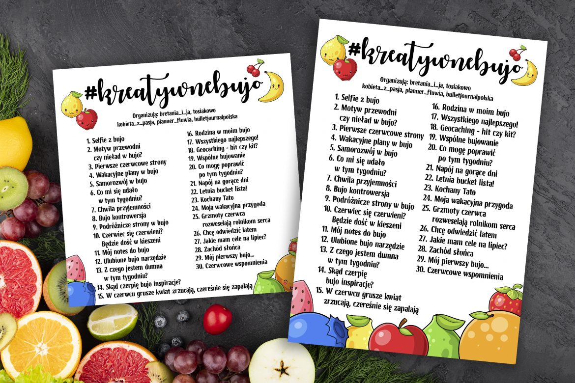 Czerwiec kojarzy mi się już całkiem letnio. Może jeszcze nie wakacyjnie, ale właśnie gorąco i… owocowo! Stąd też taki a nie inny motyw przewodni wyzwania #kreatywnebujo. W tym miesiącu zadania są związane głównie z bullet journalingiem, żebyśmy mogły przyjrzeć się naszemu działaniu w notesach. Mam nadzieję, że taki powrót do korzeni się Wam spodoba!