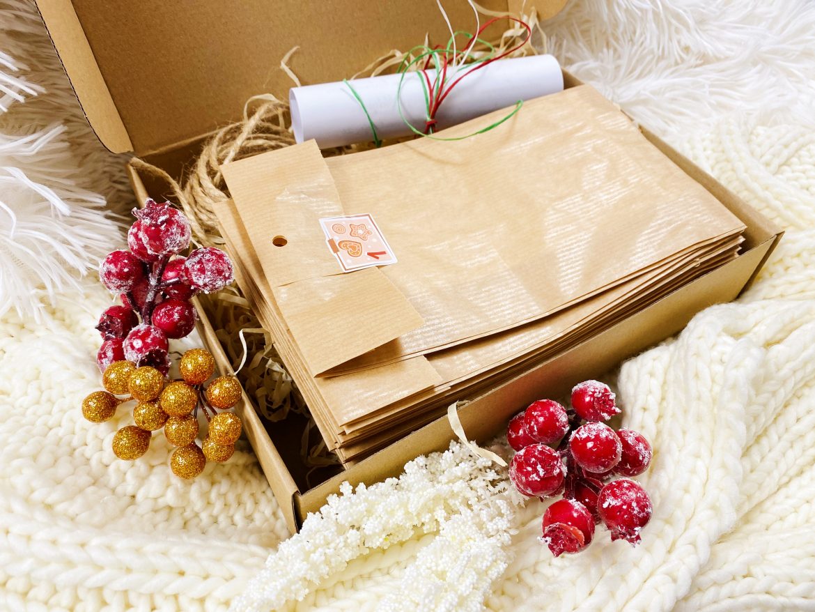 Czym jest kalendarz adwentowy? Służy on do odliczania dni od pierwszego dnia adwentu do Wigilii Bożego Narodzenia. Co to oznacza w praktyce? W przypadku mojego kalendarza – 24 torebeczki, które otwieracie od 1 do 24 grudnia, a w każdej z nich jeden pełnowymiarowy arkusz naklejek lub naklejki wycięte luzem.