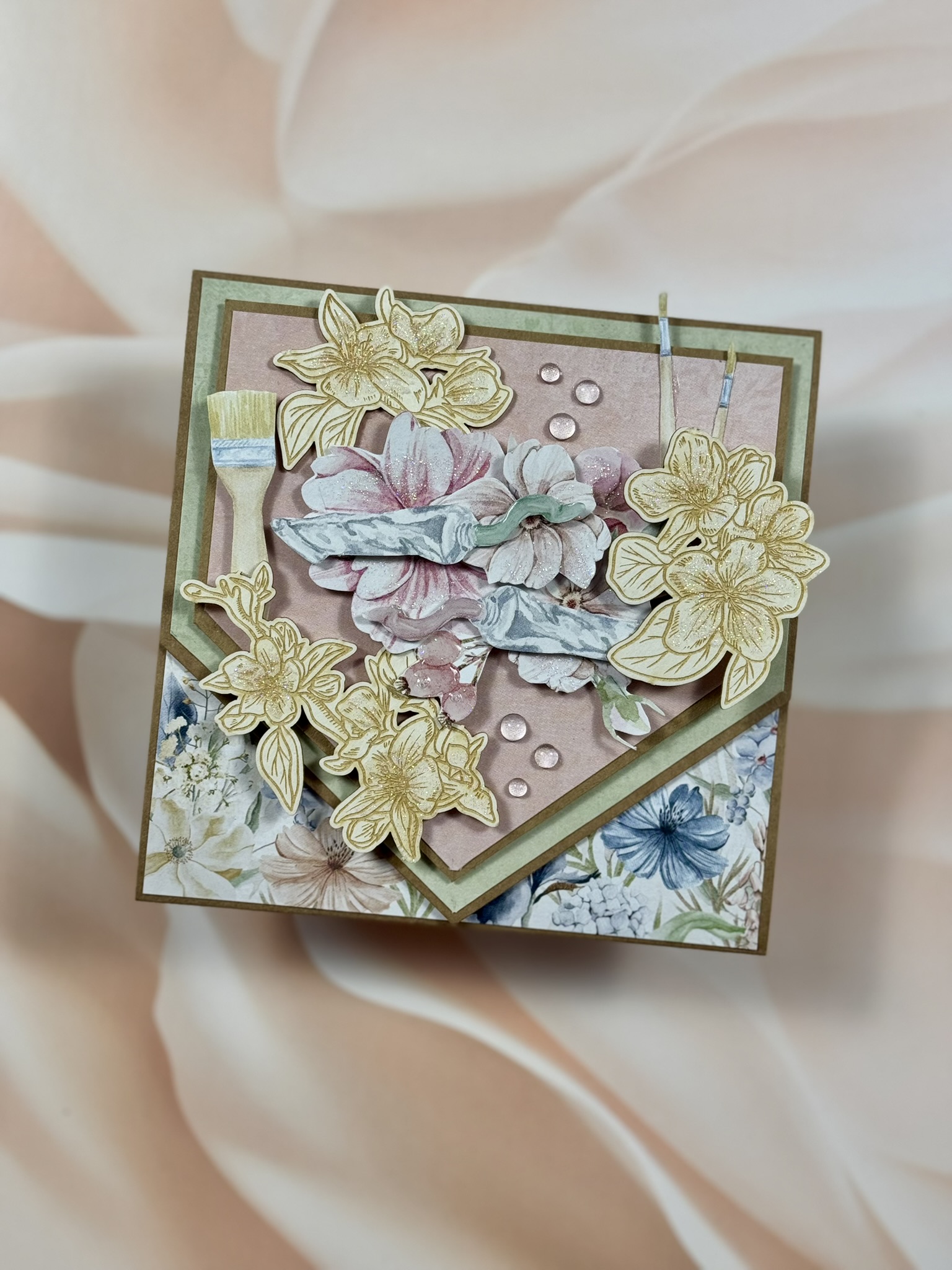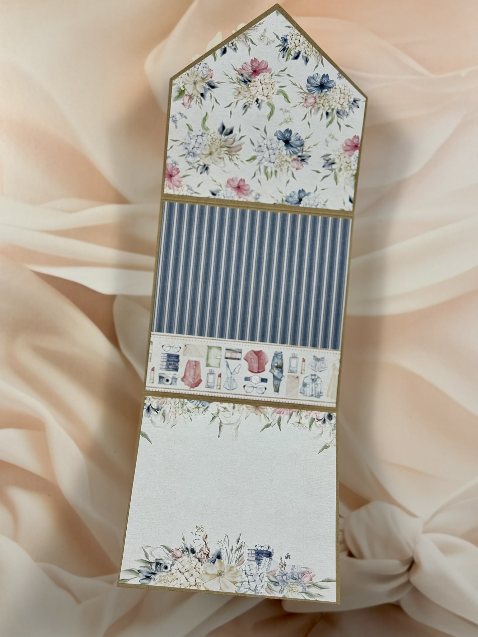 Kartka kopertówka z kwiecistymi tekturkami