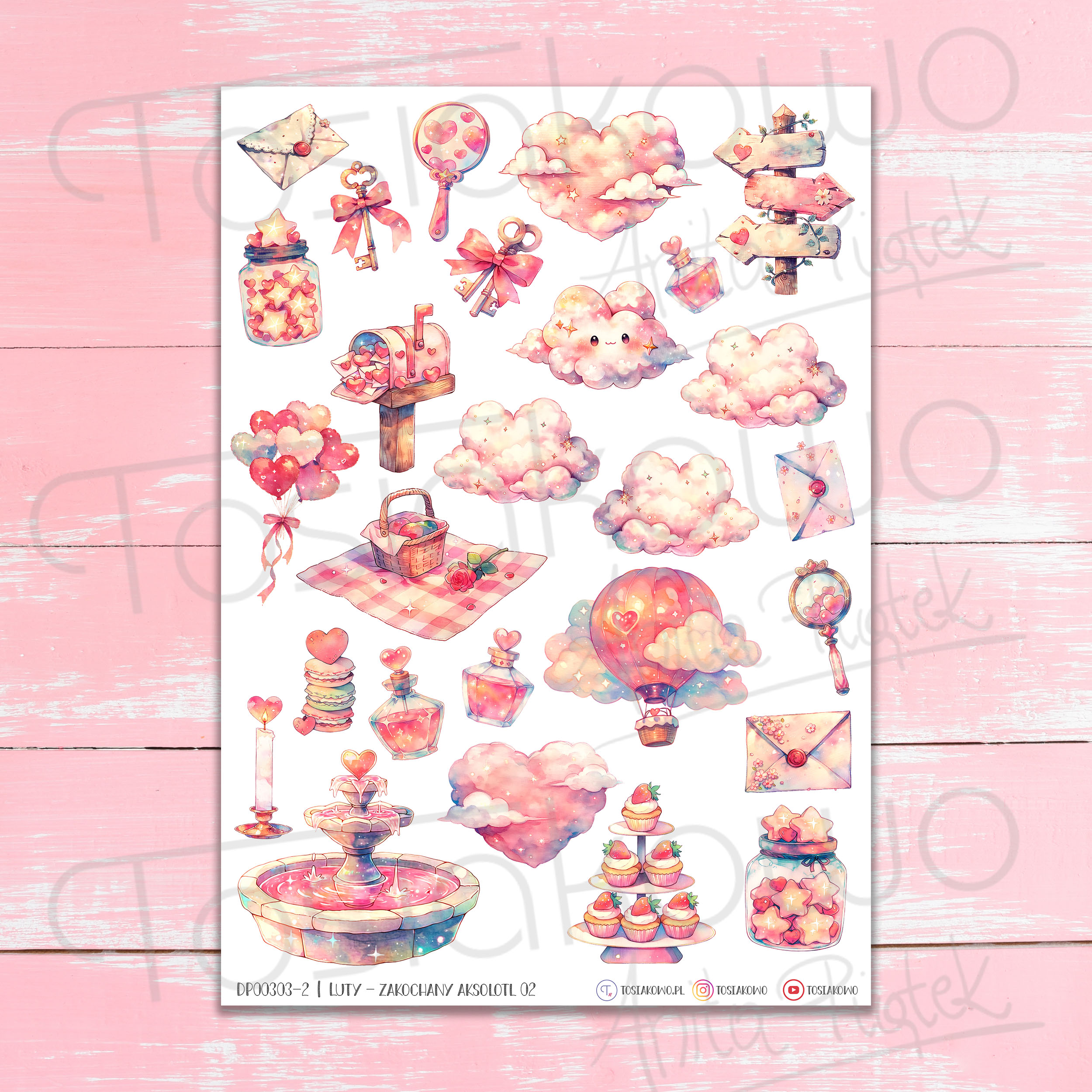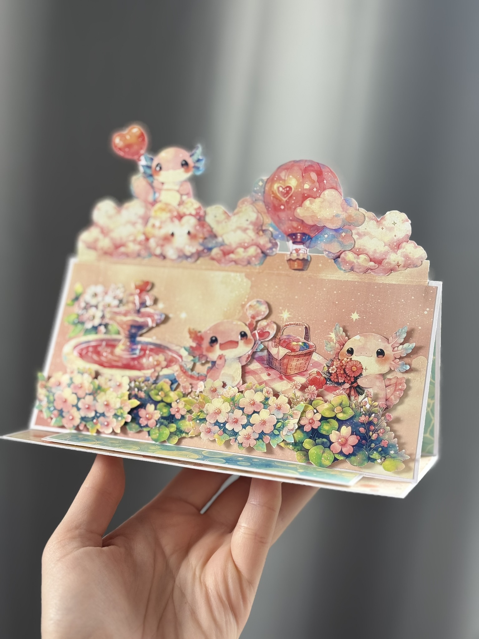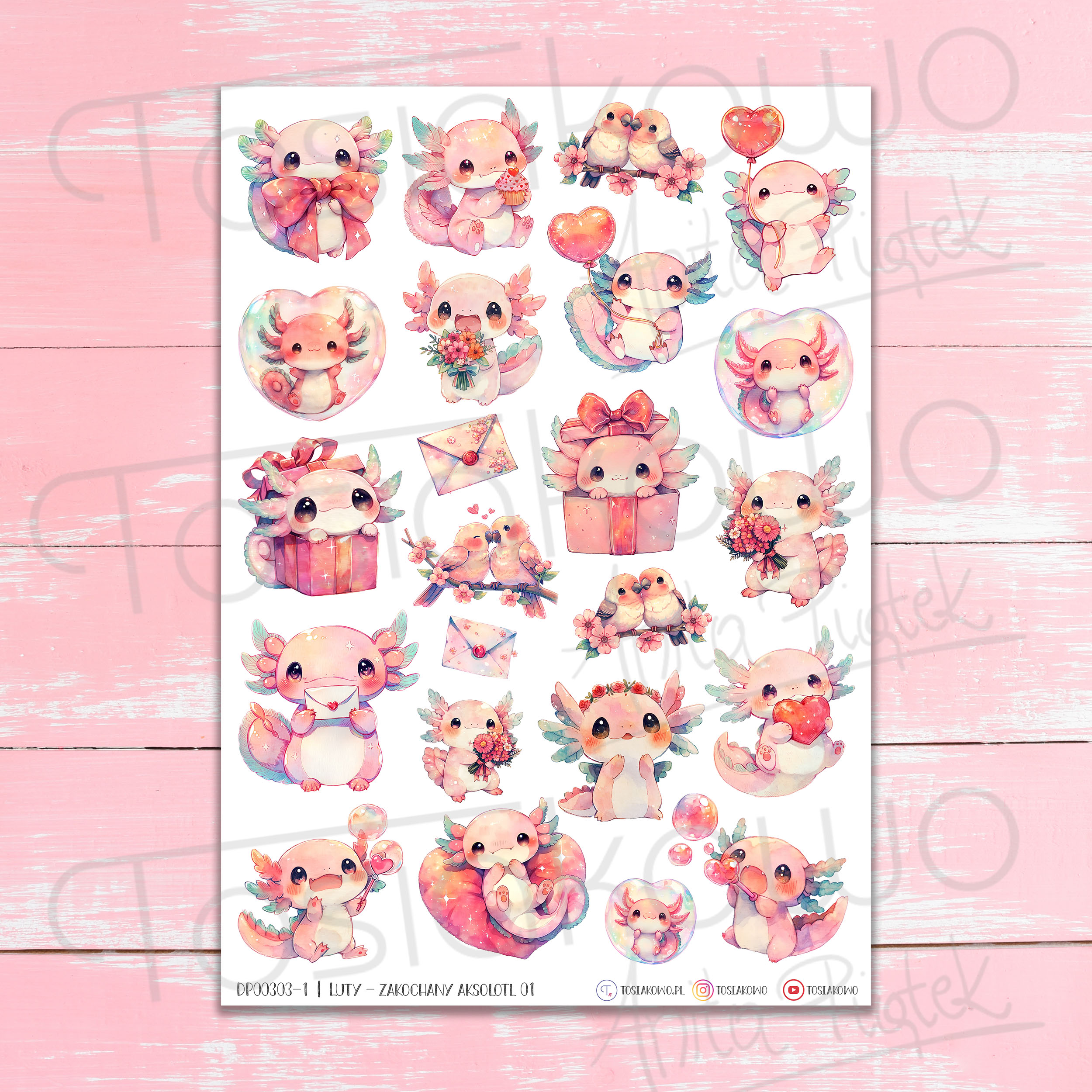Mini zestaw do kartki – Zakochany aksolotl (10 arkuszy DO DRUKU)