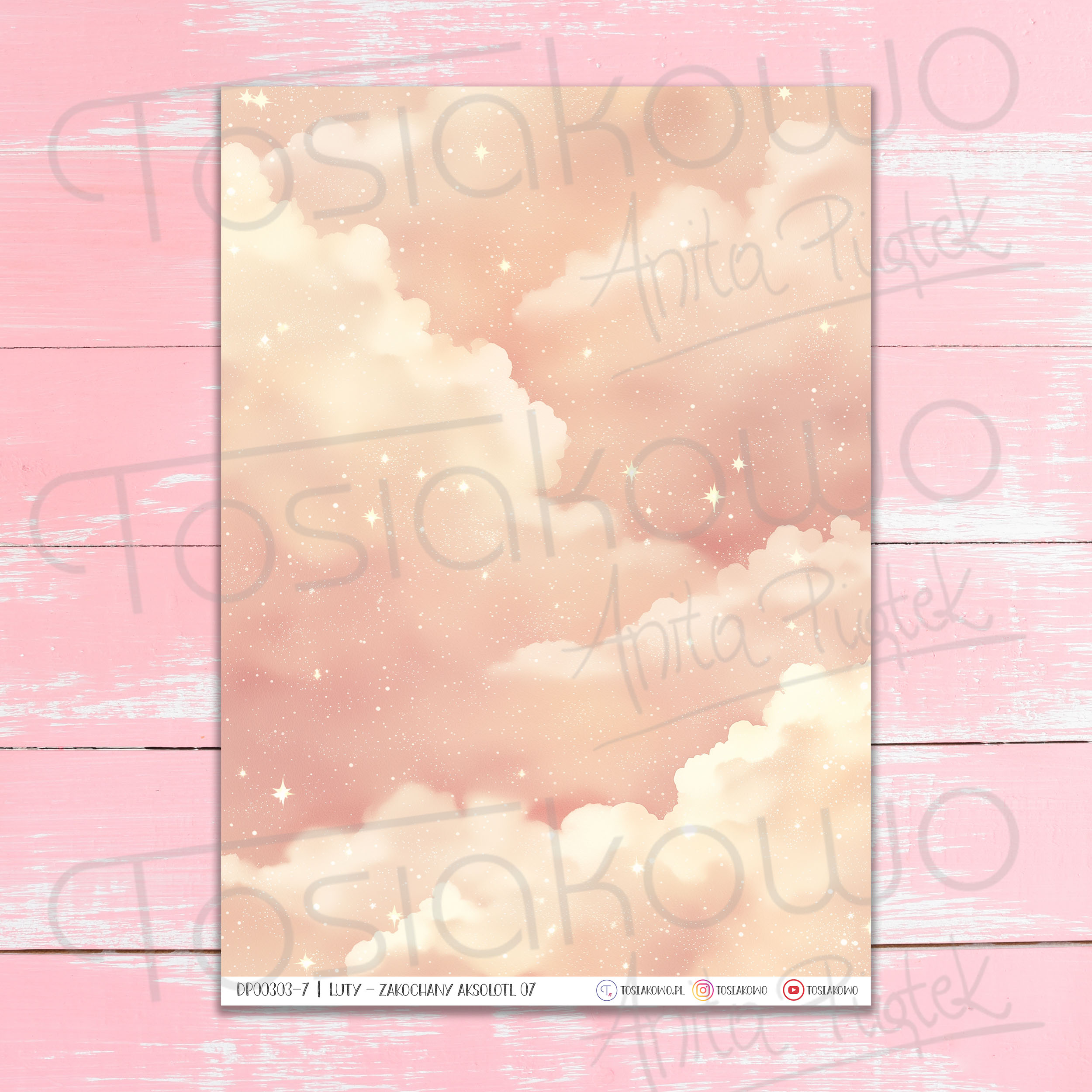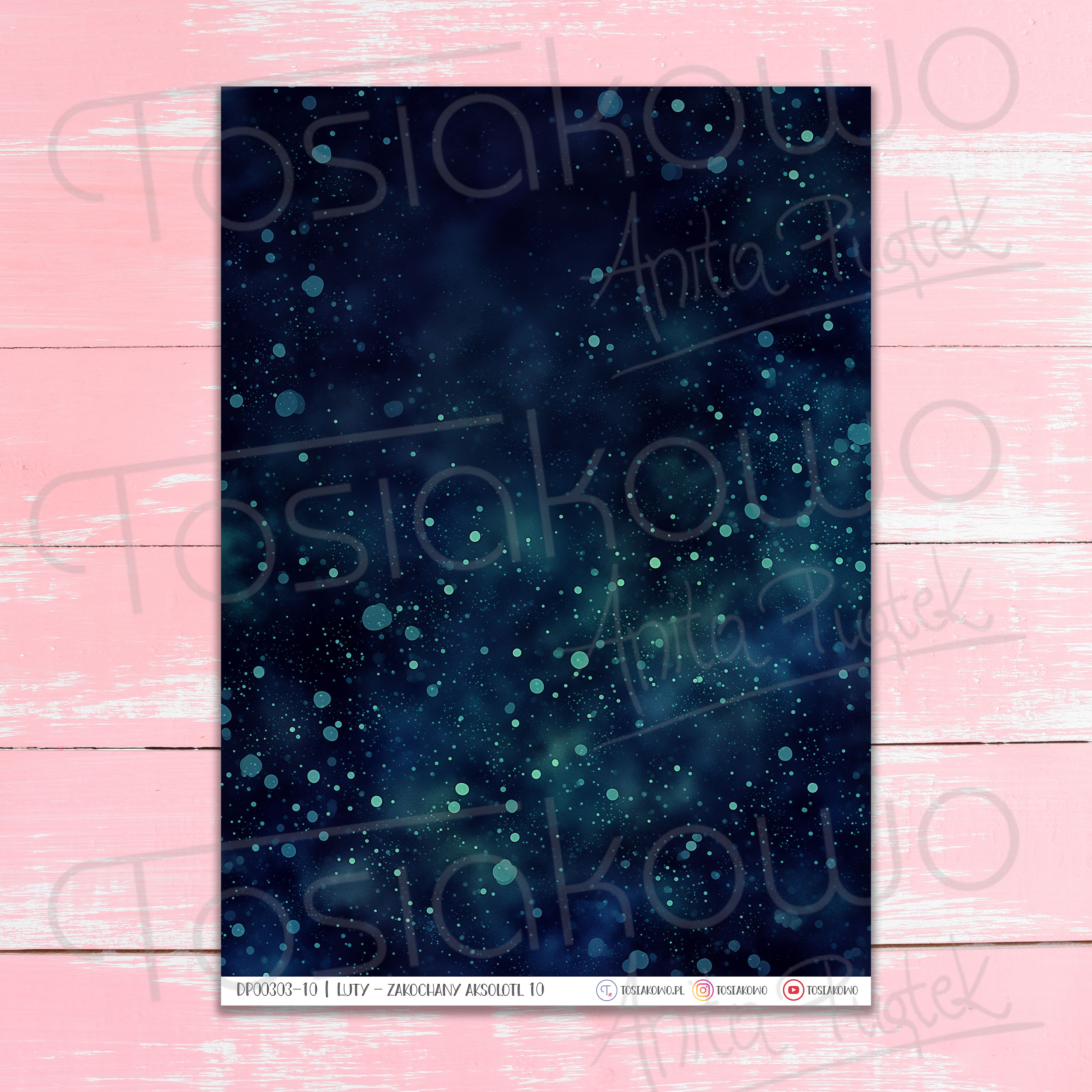 Dziesięć arkuszy w formacie A4 z tłami i grafikami. Są one stworzone jako mini zestaw do stworzenia kartki w niecodziennym kształcie i formacie.